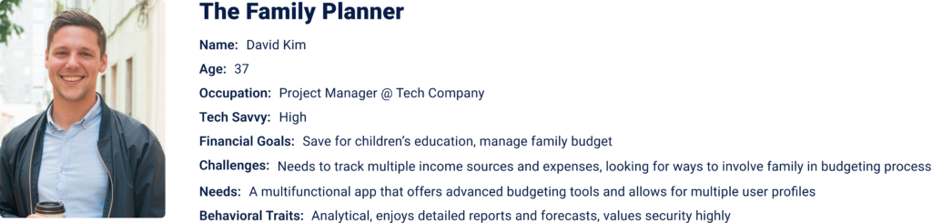 Tracking multiple income sources and expenses is challenging for family planners like David Kim because they need ways to involve the family in the budgeting process and require detailed reports and forecasts while ensuring high security.
